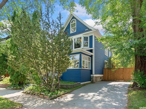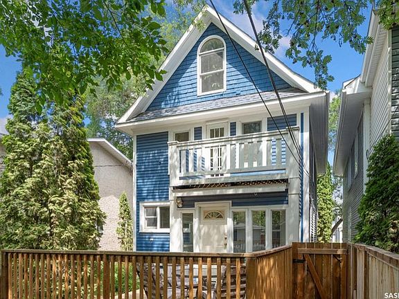 1018 Aird Street – 1912 Character Three-Story in a Storybook Setting! A character located in one of Saskatoon’s coveted and walkable neighborhoods. Offering 1,850 sq ft over 3 levels, 4 bedrooms, 3 full baths, a large 37’ lot, and a newer tandem detached garage. A picture-perfect front porch leads into a main floor rich in original details: hardwoods, French glass doors, woodwork, two elegant bay windows and a large dining room with a built-in glass china cabinet, plus an office / music room with an original cast fireplace. Main floor also features an oak kitchen, a full 3-piece bath, and a renovated rear porch/mudroom connecting to the backyard. Outdoor living is a highlight: unusually large, fully enclosed fenced yard (bigger than typical for the area), ideal for pets, kids, and leisure, and a sprawling double-tiered deck is perfectly suited for sunny entertaining. The front driveway adds rare, convenient parking to this property. The second level of this home offers three generously sized bedrooms, and a full bath with claw foot tub, with bay window views and a large private treetop balcony off one of the bedrooms! The entire third floor is a master retreat with a sitting area, large bedroom area, and a four-piece ensuite (shower door adjustment required). The basement is undeveloped. Notable updates include: windows, furnace, hot water heater, shingles, plumbing, asbestos removal, newer fencing, updated rear porch, piles under the front porch, shingles, and siding/shingles on the drywalled and insulated garage. This is a special home for people who love character, community, and the magic of an inner city neighbourhood - offering the historic charm you dream of, with practical upgrades for modern living.