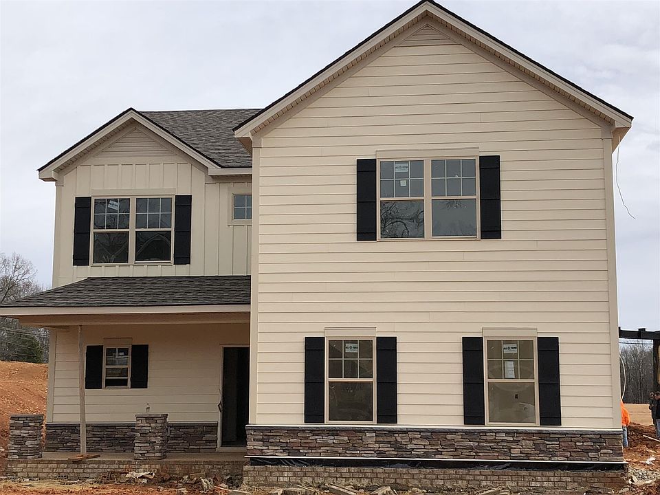 Four bedroom with bonus room on the second level. Covered rear porch, stainless steel kitchen appliances, stacked stone fireplace, and many other upgrades.