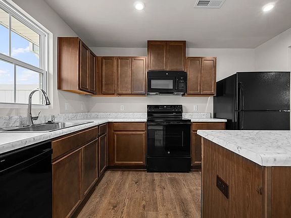 Modern finishesBlack appliancesGranite countertopsPrivate back patioWalk-in closets