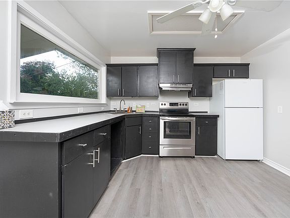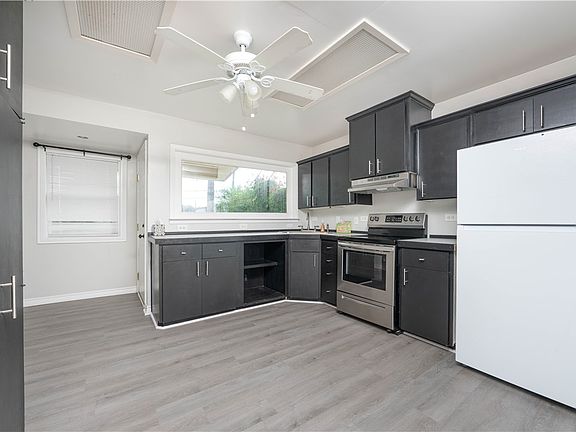 Comes with stove and refrigerator, washer and dryer connections in garage.