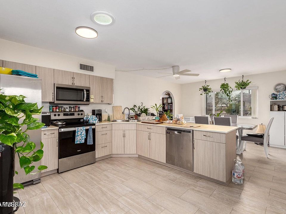 Your Desert Escape AwaitsWake up to peaceful desert mornings in this charming home where rustic comfort meets modern updates. The heart of the home features a welcoming kitchen with bar seating, opening into a cozy living space anchored by a wood-burning stove. Step outside to enjoy wide-open skies and a low-maintenance backyard perfect for gatherings, stargazing, or simply relaxing. A brand-new HVAC (2024) keeps things comfortable, while a freshly built insulated shed (2023) gives you room for all your hobbies or gear. Just a short drive to Apple Annie's Orchard and the Old West charm of Tombstone, this home is ready for you to settle in--or share as a memorable Airbnb getaway.
