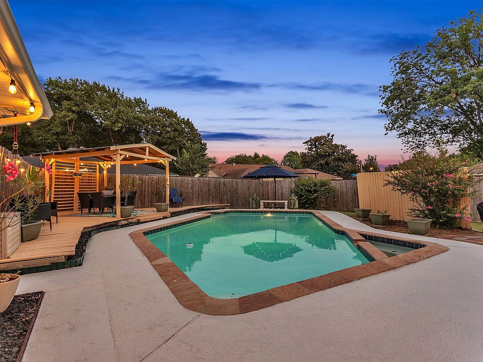 Inviting poolCrystal-clear waterElegant wood deckingBeautiful granite counter topsBig windowsGreat size kitchenAstonish pool view