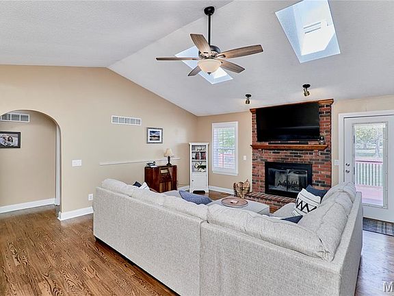 Your search ends here with this beautiful 3 bed, 2 bath ranch with tons of amazing features & full lake rights! This gem boasts vaulted ceilings, spacious open floor plan, main floor laundry, 2 car garage with enough space for your boat, large deck off the dining area, spacious bedrooms, and more! Step inside the large foyer leading to the spacious great room w/ vaulted ceilings, gorgeous wood floors, skylights bringing in tons of natural light & woodburning fireplace. Great room is open to the kitchen & dining area that leads to the spacious deck & open yard. Light & bright kitchen features SS appliances, lots of custom cabinetry, pantry, access to main floor laundry & 2 car garage w/ boat space. Primary bedroom boasts dual closets, newer cozy carpeting & ensuite bathroom w/ large vanity, skylight, soaking tub & separate shower. Two more spacious bedrooms w/ newer carpeting & full hall bathroom on the main floor. The exterior boasts beautiful curb appeal, new 2024 roof, large open yard, and spacious deck perfect for relaxing in the evenings. Resort style living awaits with full lake access and minutes to golf, pools, clubhouse, marinas, parks & endless Lake St. Louis community activities! Green Tree Elementary! Hurry before this charming home is gone!