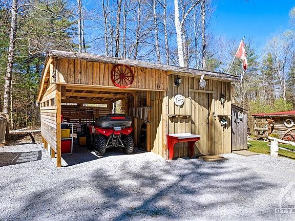 Two lovely woodland acres with charming bungalow, just 5 mins from the Crotch Lake boat launch. In summer, grow veggies in raised garden beds, play in the woods, toast marshmallows over stone firepit and enjoy boating on Crotch Lake. In winter, amazing skating rink and toboggan hill. Property also includes Bunkie, garden shed and craft cabin with lean-to for ATVs. Comfortable home (or a great retreat) has screened porch leading to livingroom with woodstove and laminate floor. Dining nook open to bright kitchen. Primary bedroom has access to side porch. Second bedroom and bathroom with new 2022 shower tub. Mudroom foyer offers you huge closet, long storage bench, 2021 washer/dryer and door to deck. Large relaxing deck. For guests, 2018 Bunkie with vaulted pine ceiling, loft, covered porch and side verandah. The 57x24 ice rink has level gravel base and sideboards. Home and Bunkie metal roofs 2020. Coverall included. Circular driveway. Hi-speed available. 20 mins Maberly or Sharbot Lake.