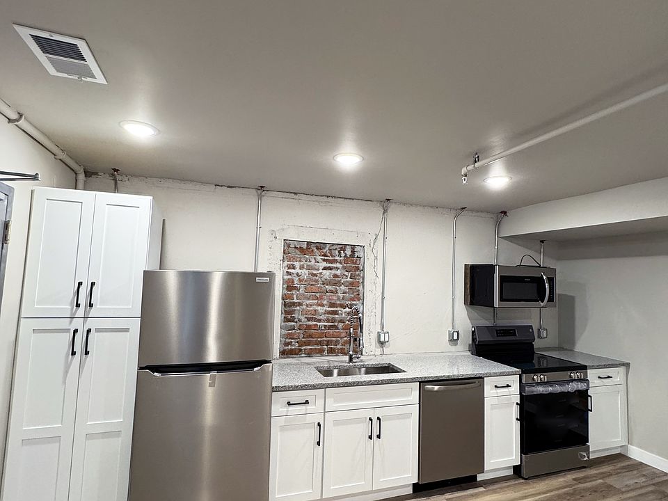 Unit one features a generous 825 square-foot plan including a 145 square-foot covered patio with direct backyard access. Inside enjoy brand new Frigidaire stainless steel appliance, large sink, walk-in rain shower, central A/C and industrial modern fixtures. This unit has original exposed brick that brings warmth and charm to this bright open space