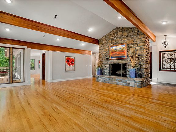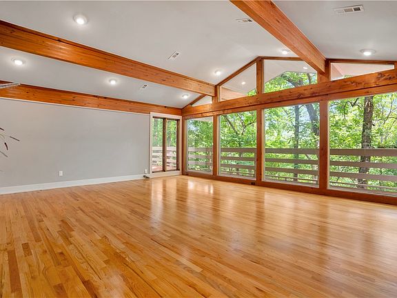 Located in a highly desirable neighborhood, this spacious 2-level home offers comfort, character, and room to spread out. With 3 bedrooms, 4 full baths, and a half bath, the layout features two large living areas—each with a rock fireplace—plus generous built-ins and ample storage. The kitchen includes quartz countertops and a convenient pantry, and a main-floor office provides a dedicated space to work or study. The primary suite features a double vanity and separate makeup vanity. Downstairs, you’ll find an exercise room complete with a private sauna. One of the home’s true highlights is the expansive back deck—perfect for outdoor dining, entertaining, or simply enjoying the peaceful wooded backdrop. Natural light pours in through large windows, giving the home an open, airy feel. An extra lot is included, offering additional privacy and green space. All this, just across the street from the neighborhood pool and tennis courts!