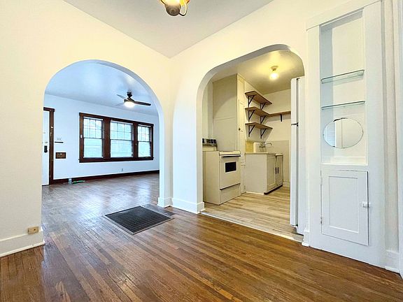 This is a nice duplex with off street parking. Wood flooring throughout. It includes fridge, stove, washer and dryer. Landlord pays for water and trash, tenant is responsible for gas and electric. Attached 1 car garage. Floor furnace heat and window ac units. Washer and dryer located in the unfinished basement with lots of storage. -GRPM