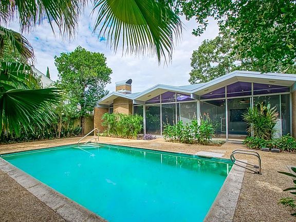 Private contemporary paradise behind walled garden with pool. Mid century modern home features fabulous spacious open living area with wall of glass overlooking pool and gardens. Comfortable floorplan with spacious primary. All bedrooms offer walk-in closets. Additional yard space at rear of property. Off street parking for 3+ cars. So many cool features - A true hidden oasis!