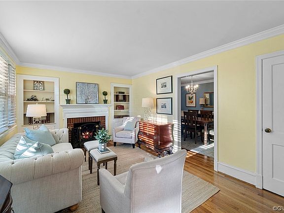 Upon entering the foyer, you are greeted by newly refinished hardwood floors. The living room features a fireplace with flanking bookcases, three windows, closet and crown molding and hardwood flooring. The dining room features crown and chair moldings, hardwood flooring and chandelier. The expansive family room with the additional front stoop entry and the mini- split, bookcases, four windows, paddle fan and carpeting. Continuing to the rear of the house are a bathroom (5 years old), primary bedroom and guest bedroom. Finishing the first level are a spacious breakfast room, modern kitchen and utility room with a new gas fired hot water tank. Upstairs are three additional bedrooms and a new remodeled bathroom.