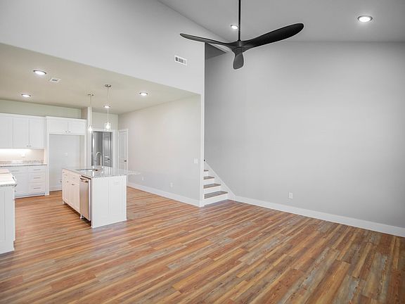 3 bedrooms 2 1/2 baths, Master on main level. Wood style flooring throughout. Kitchen features custom cabinets, stainless appliances, granite counters, large pantry. Living room has high ceiling and is open to the kitchen and access to the back covered patio. Master bedroom includes walk in shower double sinks and large closet. Upstairs has 2 large bedrooms and 1 full bath, bonus room/office and additional storage room, garage is insulated and included an insulated garage door. Lawncare is included.
