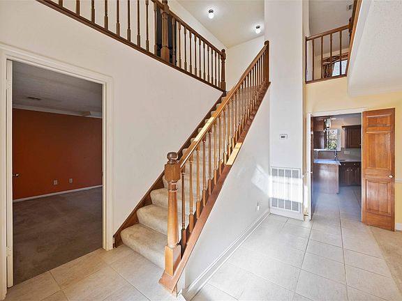 Welcome to this inviting home in the charming Nottingham Country community, where comfort and functionality meet timeless appeal. The large living room boasts soaring ceilings, stylish accent walls, and a brick fireplace, seamlessly connecting to the formal dining room for effortless entertaining. The spacious kitchen features an island with a cooktop and second sink, plus a cozy breakfast nook that makes mornings a delight. The primary suite offers a true retreat with backyard access through French doors, an ensuite bath complete with a soaking tub, separate shower, and dual walk-in closets. Upstairs, enjoy a versatile loft, three comfortable bedrooms, and a media room with a wet bar, perfect for movie nights or hosting. The fully fenced backyard offers green space and a quaint patio ideal for outdoor dining or relaxing evenings. Nottingham Country’s tree-lined streets, community pool, parks, tennis courts, and walking trails provide the perfect backdrop for this beautiful home.