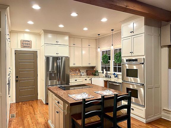Beautiful home situated on a 2 acre lot inside the city limits. This home features a spacious den that opens up to a custom made kitchen with large island. Kitchen has a double oven, built in microwave, smooth cooktop, dishwasher, disposal, and built in trash in a hidden cabinet with a double window situated over the farmhouse sink with two gorgeous pendant lights above. Custom kitchen cabinetry and a subway tile backsplash that frames the double windows brings this kitchen to perfection. Master bedroom is on the main floor and has a his/her closet with built in shelving. 3 other bedrooms have walk in closets with built in shelving. Large laundry room on the main floor with a laundry chute. Bathrooms have custom tile. Two of the baths have tile showers with glass doors. Hardwoods floors expand over the entire main floor and stairs and upstairs hallway. Custom bookcase entryway coupled with the prestigious staircase is stunning. A glass transom above front door and many windows in this home allow light to flow throughout, making the home bright and open. Entertainment living area in addition to the den that opens to a large formal dining room with French country/farmhouse light fixture. The home has been completely remodeled and everything is gorgeous and up to date. Sitting area in the master has a very pretty cedar beam entrance. Recessed lighting in the den and kitchen. Main floor boasts tall 9 foot ceilings. There are a lot of cabinets and many closets in this house, along with many custom wall and ceiling treatments. There is a bonus flex area upstairs that could be used as a 3rd den, office, playroom, etc. Leading to the 5th bedroom is a hallway craft/office area. The outdoor patio is spacious with a large covered patio with double ceiling fans and a beadboard ceiling. The covered patio features large columns and flows into a large open patio that is perfect for playing basketball, riding bikes, or entertaining. Don’t miss out on this one! There’s not another one like it in the area. Contact me via call or text if you are interested!