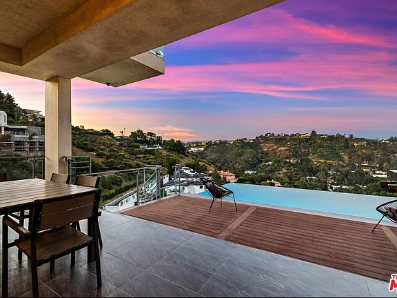 Sophisticated Bel Air modern villa with stunning endless views from every room. Tech savvy smart home system by Control 4 automates this awe inspiring property. Pocketing walls of glass reveal an endless saltwater infinity pool with extraordinary view verandas, dining loggia and entertaining deck. Massive living room with art gallery converts into a home theater upon command. Dining room features wraparound wine racks. Eat-in Chef's Kitchen features Miele and Wolfe appliances, Ceasar- stone counters, huge walk-in pantry and a TV lounging area with breakfast nook. A sweeping staircase leads to a five star master with a massive walk-in closet, spa-like master bath and private outdoor lounge with fire-pit. Three other en-suite bedrooms are also upstairs