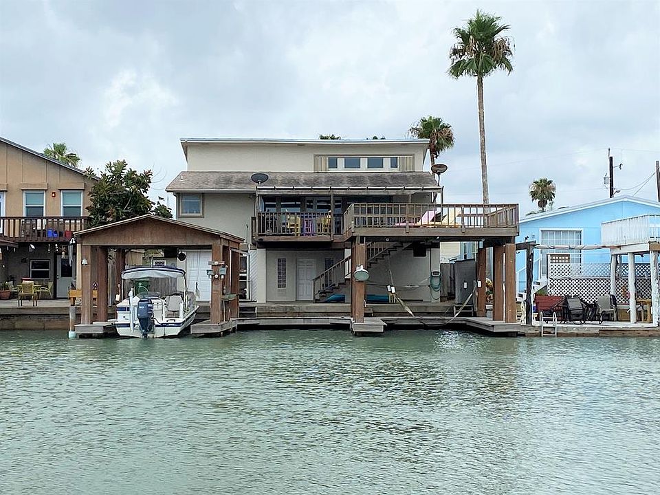 Make this your FISHING and BEACH PARADISE! Incl. 2 covered boat slips w/sling lifts and a 3rd open slip for that BIG boat! Spacious 2nd fl. living, incl. 2 bedrooms, 2 full baths, an open great room incl. a wet bar,lovely kitchen w/ an abundance of granite counter tops, comm. Viking electric range,custom cabinets w/pull outs in all lower units. Lg pantry incl. spice door and w/d hookups. Enjoy channel and sunrise views from your semi covered patio or lg. Deck over the water. The garage is a hobbyist or car owners delight w/room for 4 vehicles. There is also an office and workshop area w/ complete sq. footage that is heated and COOLED via its sep. HVAC. 3 insulated gar. doors. Sep. elect. panel 220vac plug and 50/30/20 amp RV panel.