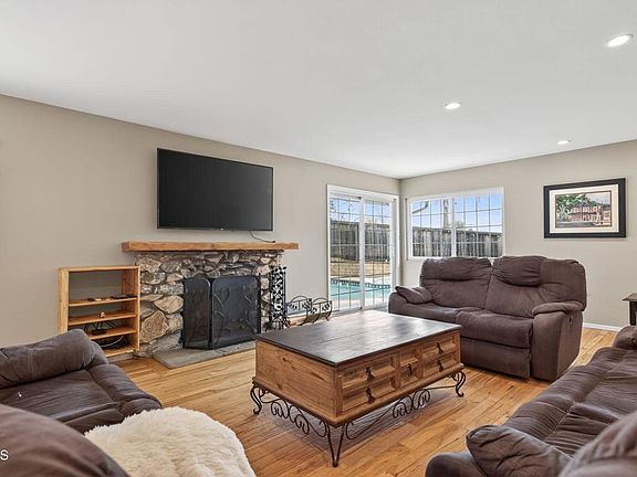 Sparkling poolClassic fireplaceSerene mountain viewsEnsuite bathDedicated officeExpansive primary suiteOversized downstairs bedroom