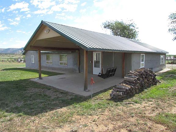 Wide open views at the end of the road, tastefully done remodeled older farmhouse with 3 bedrooms and two bathrooms. Large open modern kitchen with vaulted tin ceiling and thick beams with dining area, breakfast area, and a cut out west into the TV/living room looking straight out the west window at the mountains. One end of the house has a common area which accesses the two guest bedrooms, bathroom and seperate shower/ claw foot tub room. The shower is large handicapped accessible. Off this room is a sauna room which is not hooked up, but the parts to reconnect it are in the garage. On the other side of the house is a large master bedroom with walk in closet and bathroom. Off the TV/living room is a large mudroom which doubles as a utility room and access to the covered porch on the west side of the house. The house has a concrete path around much of the home and although the west side seems the best place to park and bring items into the home, the east side has some attractive shade trees, large concrete patio and access into a sun room which then heads into the kitchen. This east side is a wonderful place for morning coffee, or afternoon shade. The property overlooks the Cimarron river drainage and up the Cimarron Canyon to the west, with easy access to the mountains, hunting and fishing. There is a sizable garage workshop on the property ideal to hold a larger vehicle, with space and workbenches for projects and storage, lifting an engine or breaking down an elk. Cimarron is at an ideal 6,400 ft elevation which allows you to be outdoors and access the running trail on South Hwy 21, or take bike rides out on 64 with the wide shoulder.
