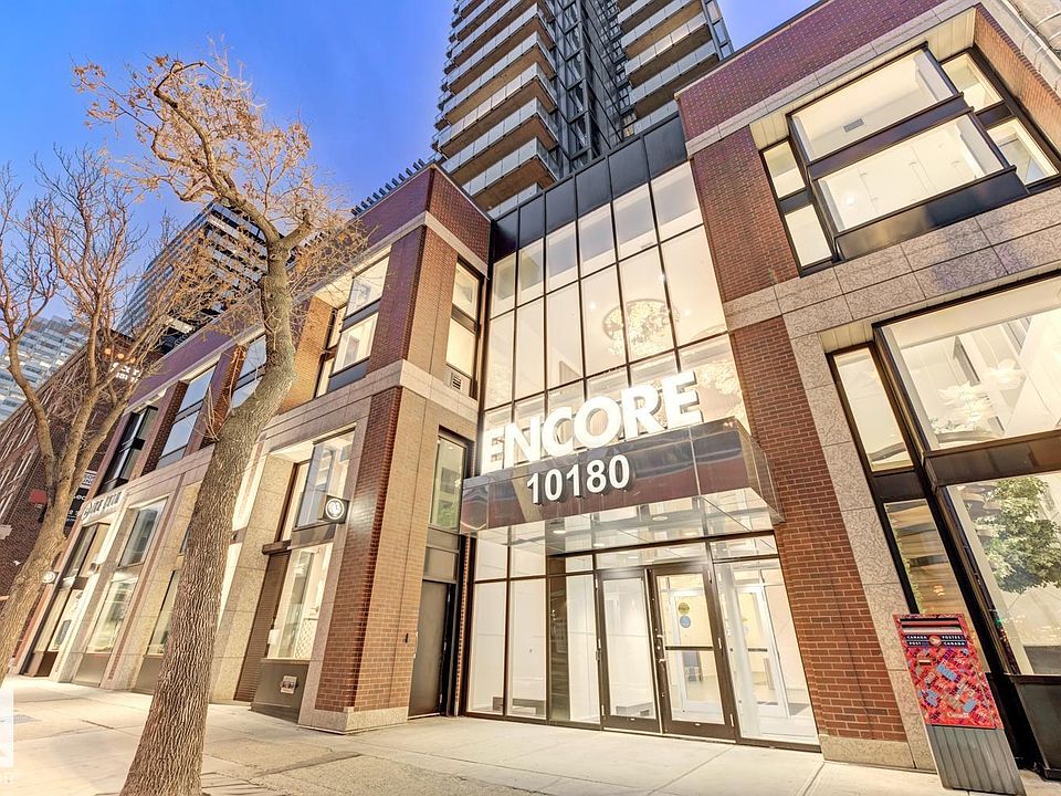 **UPGRADED**Elevate your lifestyle in this stunning 29th-floor condo at Encore Tower, just steps from Rogers Place and Edmonton's vibrant Ice District. Soak in breathtaking 180° downtown views through floor-to-ceiling windows and unwind by the striking marble FIREPLACE. The modern chef’s kitchen featuring KitchenAid’s upgraded *RED SEAL*stainless steel appliances and sleek quartz countertops. This 2-bedroom, 2-bath unit includes a luxurious primary suite with ensuite, walk in shower, and California Closets. The private balcony is the perfect place for morning coffee or after-work refreshment, while building amenities include a fitness centre, social lounge, outdoor terrace, and titled underground parking with storage locker. Live stylishly at the center of it all.