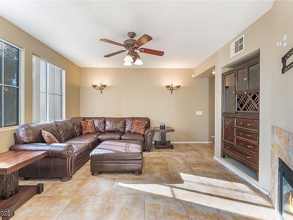 Turnkey, gated, 3 bed, 2 1/2 bath, and 2 car garage nestled near Lone Mountain in the Northwest for under 300k! Private front courtyard entrance, tile flooring throughout the first floor, & cozy fireplace in the living room. Kitchen features granite countertops, stainless steel appliances, breakfast bar, and formal dining area. Downstairs laundry room and half bath. Upstairs includes 3 bedrooms, 2 full baths, and office nook. Large primary bedroom w/ walk in closet and dual vanities. Ceiling fans in all rooms. Attached full size 2 car garage. Sparkling community pool and spa, exercise room, guest parking, clubhouse. VA and FHA financing eligible.