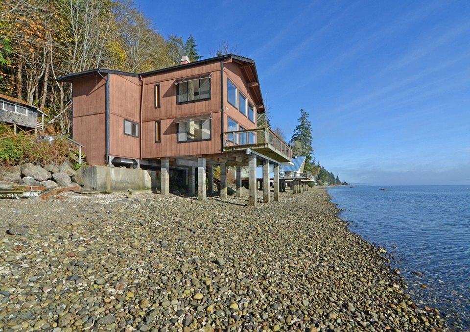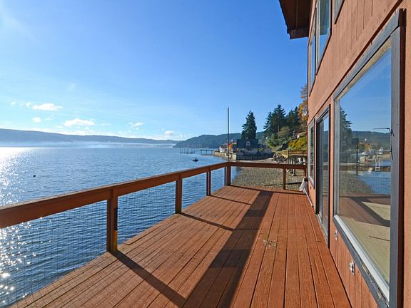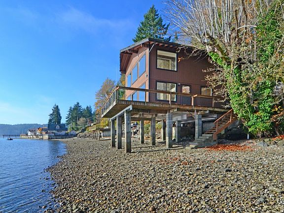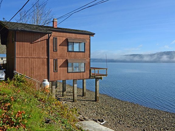 Great canal home with 100' of no-bank frontage. Open concept with kitchen, living and dining combo. Two-story ceilings in living room with wall of windows to take advantage of the gorgeous canal view. Gas fireplace. 2 bedrooms plus a bonus room on second level. Large deck with stairs to beach. Storage building across street and potential for additional parking.