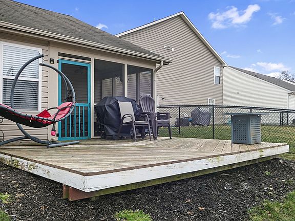 Don't miss out on this lovely 3 bedroom, 2 bathroom ranch home on a pond in Avon's Sunchase Woods neighborhood! Explore this home via interactive 3D home tour, complete with floor plans, video & more. Open concept great room features a cathedral ceiling, wood-burning fireplace, & pond view. Enjoy the fresh air and more pond views from the screened porch, wood deck, & fully-fenced backyard. Primary bedroom includes a spacious walk-in closet & private full bathroom with double sinks & garden tub. Eat-in kitchen with tile backsplash, pantry, & a separate dining area. Attached 2-car garage offers additional storage space. Convenient access to nearby dining, shopping, & more!