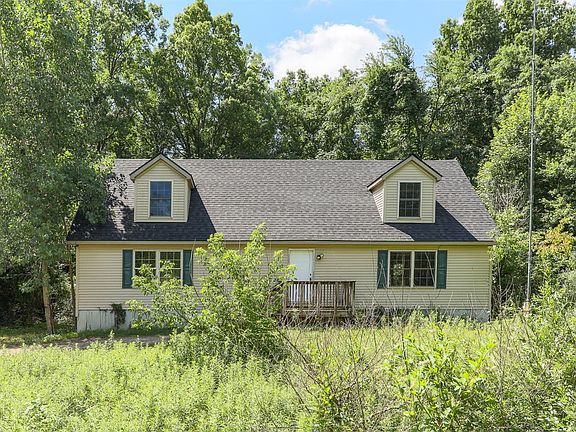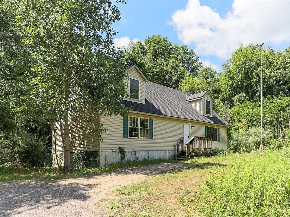 Great potential for this 3BR, 2.5BA cape cod home on just over 8 acres. The roof, with a 35-year shingle, is less than a year old! Main floor includes spacious first floor master with en-suite bath (large soaking tub with shower combo), first floor laundry, large half bath, family room with sliding doors (deck needs to be installed). Kitchen has wood cabinetry, newer dishwasher. The upstairs level features two bedrooms, second full bath, bonus loft area. Solid-core doors throughout. The lower walk-out level has high ceilings, ideal for refinishing for additional living space or continued use as a work/shop area with lots of built-ins and storage. The exterior is low-maintenance vinyl siding (power washed this year). The home sits on just over 8 acres and is set far back from the road for maximum privacy. City water and septic. Lower Augusta Township taxes, Lincoln Consolidated Schools, less than 15 mins to US-23 or I-94. Property sold in AS IS condition