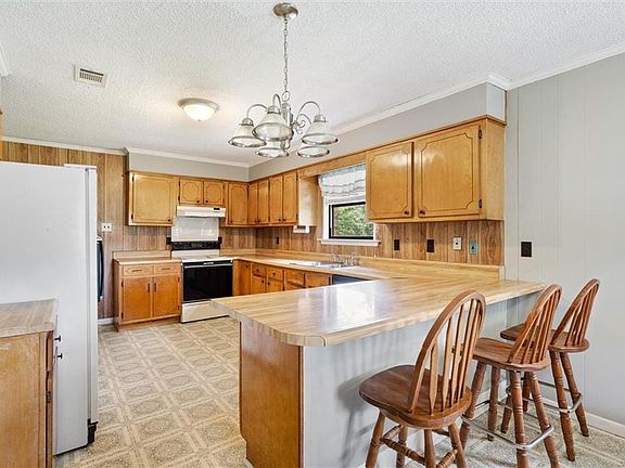 Nestled on 6.6 acres of serene countryside, this charming 3 bedroom 2 full bathroom house offers a perfect blend of tranquility and functionality. The heart of the home is the large kitchen and dining room, perfect for family gatherings. The interior is designed with ample living space, ensuring comfort and convenience. The master suite features a full bath, providing a private retreat, while the additional two bedrooms are perfect for family members or guests. One of the standout features of this home is the large deck overlooking the property. This outdoor space offers stunning views, making it an ideal spot for relaxing and enjoying the peaceful setting of the countryside. The property boasts a picturesque pond, where fish swim and deer often come to drink, adding to the idyllic rural setting. Behind the house, you'll find a garden shed ideal for storing tools and gardening supplies. Nearby stands a large, older shed that doubles as a workshop, providing ample space for various projects and storage needs. The entire property is fenced and accessed through a sturdy gate, ensuring safety. The front portion of the land is cleared, offering a spacious area for outdoor activities. As you venture further, the landscape transitions into a wooded area, perfect for nature walks and enjoying the beauty of the natural surroundings. This property is a haven for those seeking a peaceful retreat with the added benefit of functional amenities. NOTE: Home has fully functioning HVAC system. Owner preferred window units. 2024-08-06