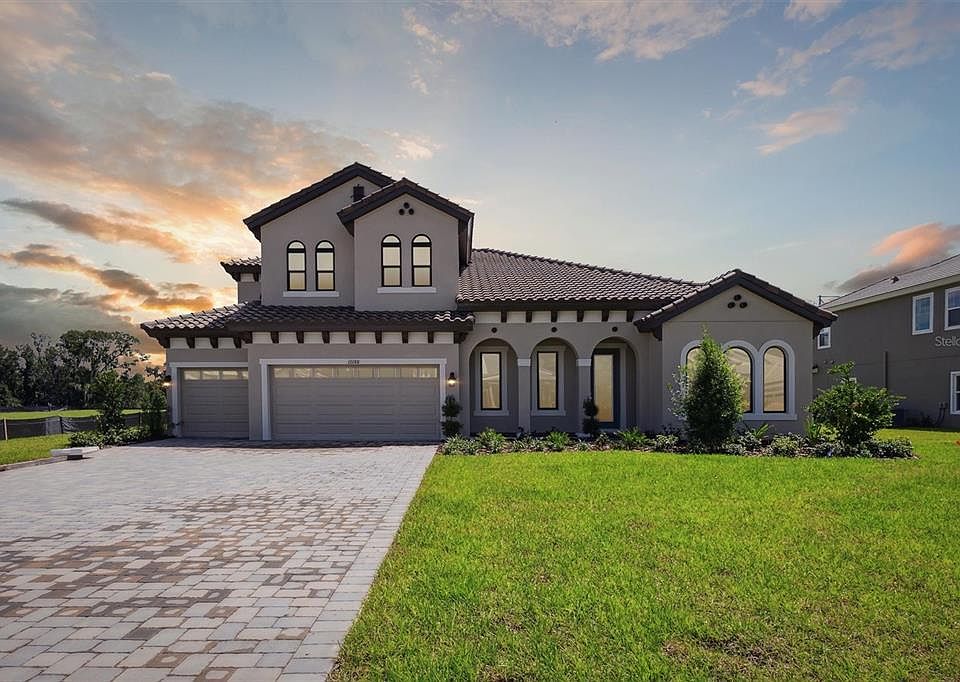 Welcome to Creek Ridge Preserve in Lithia, Florida – where comfort and community come together in this inviting home! Nestled in a friendly neighborhood, this house isn't just a place to live; it's where memories are made and laughter fills the rooms. Step inside and feel the warmth of home wash over you. From the elegant tray ceilings to the quartz countertops, every detail exudes comfort and style. The kitchen is the heart of the home, ready for family dinners or impromptu gatherings with friends. Relax in the open-concept living area, where cozy den nooks and not one, but two bonus rooms offer space for work, play, or simply unwinding after a long day. Retreat to the master suite for a moment of tranquility, complete with a luxurious free-standing tub and separate shower. Practical features like a spacious laundry room and pre-wiring for a future pool add convenience and flexibility to everyday life. With five bedrooms, four bathrooms, and a three-car garage, there's room for everyone to find their own slice of paradise. Located in a peaceful neighborhood close to TOP RATED SCHOOLS - this home offers the perfect blend of serenity and convenience. Don't miss out on the chance to make this house your home – schedule a showing today and start imagining the memories you'll create! Creek Ridge Preserve is a gated enclave of just 124 premium, 90' wide homesites located off of Lithia Pinecrest Road, right next to the established neighborhood of Fish Hawk. Enjoy all that Lithia has to offer, including top-rated schools, premium shopping and recreational options, and so much more. Stay close to everyday conveniences like Sprouts Farmer’s Market, Fresh Market, and Publix just 10 minutes away. This luxurious gated community features beautiful tile roofs, paver driveways, oversized homesites, and no CDD fees. Images shown are for illustrative purposes only and may differ from actual home. Completion date subject to change. Exterior image shown for illustrative purposes only and may differ from actual home. Completion date subject to change.