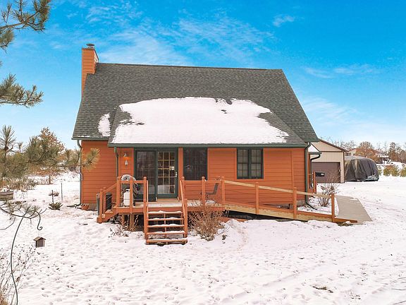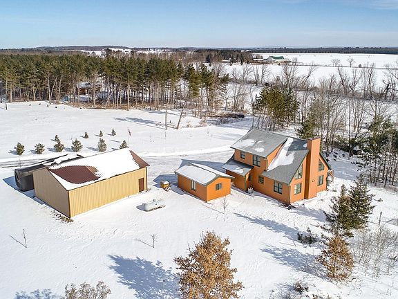 Chalet style home on Red Cedar River - pretty much re-built in 2018. Open concept. Great floor plan to have large gatherings. Island in kitchen. Vaulted ceiling accented in Knotty Pine. 32x40 detached garage w/cement floor & electricity. Fabulous wood-burning Rock fireplace. Tons of storage. Handicap ramp. Screened porch overlooking the river. Per seller: new well, updated roof/siding/plumbing/electrical/appliances/Hickory floors/Hickory cabinets/insulation, New septic. Cement board siding.
