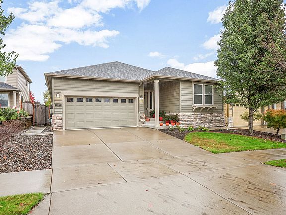 Don't miss this well maintained one-level home featuring an open floor plan, gourmet kitchen has gas range with double ovens, custom cabinets throughout with self closing drawers, walk in pantry, dining room with slider to covered patio great for year around bar-b-ques, living room with gas fireplace, 4 bedrooms, large primary bedroom with new carpet, shower and separate tub, large walk-in closet. The living room, dining room and kitchen have been freshly painted. Yard has irrigation system and has been recently landscaped with water feature and raised beds, additional patio with gazebo, firepit and hot tub. The garage has lots of additional overhead storage racks and is oversized. This is a must see.