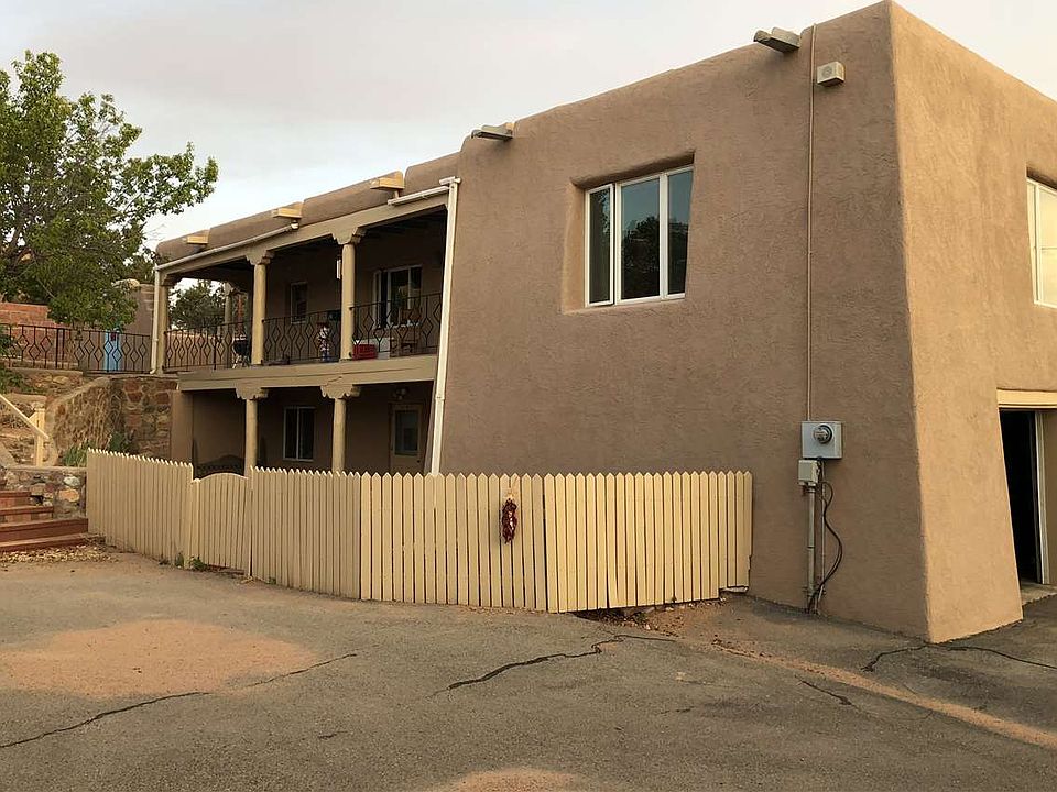 CITY LIGHT VIEWS FROM THIS LIGHT BRIGHT ADOBE HOME LOCATED MINUTES FROM DOWNTOWN Santa Fe. THIS HOME FEATURES 3 BEDROOM TWO BATH MAIN HOUSE WITH AN ATTACHED ONE BEDROOM ONE BATH GUEST HOUSE. GUEST HOUSE IS CURRENTLY RENTED FOR $950 PER MONTH. HOME CAN BE EASILY CONVERTED TO FOUR BEDROOM. EXCELLENT LOCATION PERCHED OVER THE CITY. FEATURES INCLUDE WOOD FLOORS, BEAMED CEILINGS, GRANITE COUNTER TOPS, HOT WATER BASEBOARD HEAT,GAS COOKING, REFRIGERATED AIR, OPEN FLOOR PLAN BIG VIEWS, WATER STORAGE SYSTEM, WOOD RAISED PANEL DOORS, DOUBLE PANE INSULATED ANDERSON WINDOWS, BEAMED CEILINGS. ALL CUSTOM FEATURES. SITED ON 1- ACRE LOT. PRICED TO SELL!!!