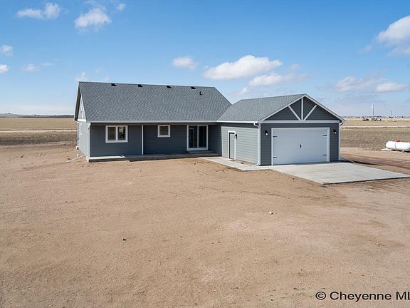 Brand-New Rural Home by Leaning Tree Homes minutes east of Cheyenne. Popular ranch-style "Eric Plan" open floor plan featuring 2 bedrooms, 2 baths, 2-car attached garage. Spacious unfinished basement. Central air-conditioning. Spectacular sunrises and sunsets can be appreciated year-round. Tranquil property on 6.01 acres.