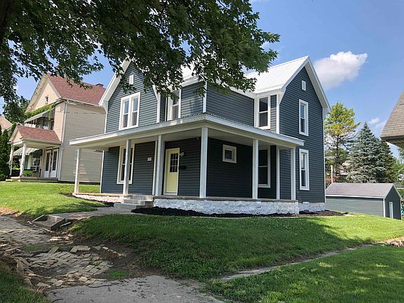 Beautifully updated 4 bedroom, 2 bath home. New vinyl siding, new metal roof, new electrical fixtures, new paint throughout and new carpet. Double pane windows, 200-amp service, modern furnace and lots of storage space. Enjoy your beautiful wrap around porch overlooking General Slack Park. Detached 10x20 shed that could be converted back into a garage. Appliances within the home to remain.