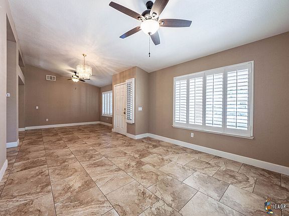 Welcome to the stunning community of Ventana Ranch in Brawley, where you'll find this charming 2083 sqft Single Story home. Nestled in a coveted, tranquil neighborhood, it's just waiting for you to make it your own. With 4 bedrooms and two bathrooms, the spacious floor plan offers a comfortable living space. Throughout the home, you'll appreciate the recently painted interiors and exteriors, adding a fresh and inviting atmosphere. The tile flooring provides a stylish touch, and to keep you cool, there's a newer 5-ton AC split unit with attic AC. Enjoy the privacy of a backyard fence, window coverings, and ceiling fans in every room. The master bathroom has also been recently remodeled and now showcases a beautiful new shower and tub. Additionally, you'll find an indoor spacious laundry room and an attached 2-car garage, which also features a front covered patio area that can be utilized as a third parking spot. The neighborhood boasts convenient shopping options and several parks, adding to the allure of this fantastic opportunity. Don't let this chance slip away.