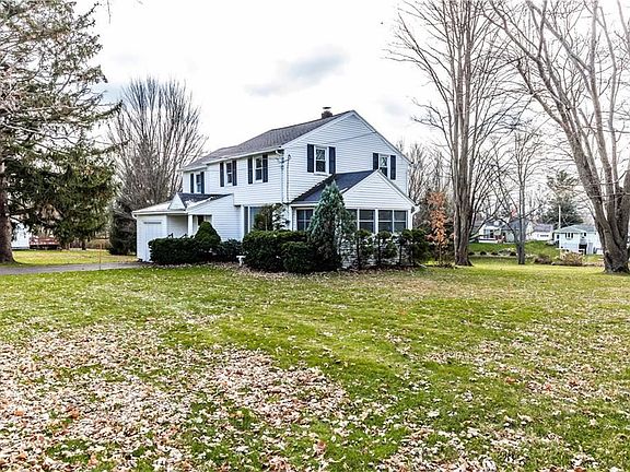 Charming colonial set on park like lot minutes from village of Liverpool and close to highways, downtown and shopping. Wonderful walking/biking trails, boating on Onondaga Lake are a short drive away. This wonderful family home is ready for your personalizing touches. 1+ acre gorgeous, flat lot perfect for play, gardens or whatever you dream! Low maintenance vinyl siding and newer comfort windows make this home easy to maintain. Wide arched doorways give an elegant feel. Hardwood floors through first floor. Enclosed porch off living room and formal dining room. 3 spacious bedrooms upstairs. Tons of storage and walk up attic. Attached garage. Don't miss out on this unique opportunity!