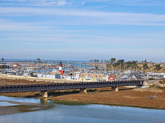 Walk in to stunning panoramic ocean, harbor, and river views from this top floor spacious 2-bedroom, 2-bath condo in Seacliff. This elegant residence features a large ocean-view balcony, rich wood flooring, and a gourmet kitchen with granite countertops, birch cabinetry, and stainless steel appliances. Recessed lighting enhances the ambiance throughout, while the newly carpeted primary bedroom offers stunning ocean views, a luxurious en-suite bath with granite counters, a walk-in shower, and a walk-in closet. Additional highlights include a convenient laundry closet with a stacked washer/dryer, ceiling fans, and two reserved garage parking spaces. Indulge in resort-style amenities, including an ocean-view pool and spa, outdoor fireplace, clubhouse, and fitness center. Ideally located just a short stroll from the beach, harbor, and scenic bike and walking paths. Furnishings negotiable.