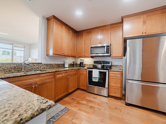 Steps to the Oceanside Harbor South Jetty Beach and surf break. Nice view of the lagoon off the Ocean. 1,143 sq ft of beautifully appointed living space. The open floor plan boasts gleaming wood floors throughout, with plush carpeting in the bedrooms for added comfort. The modern kitchen features elegant granite counters and top-of-the-line stainless steel appliances, perfect for any home chef.