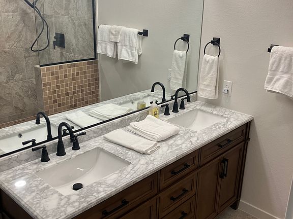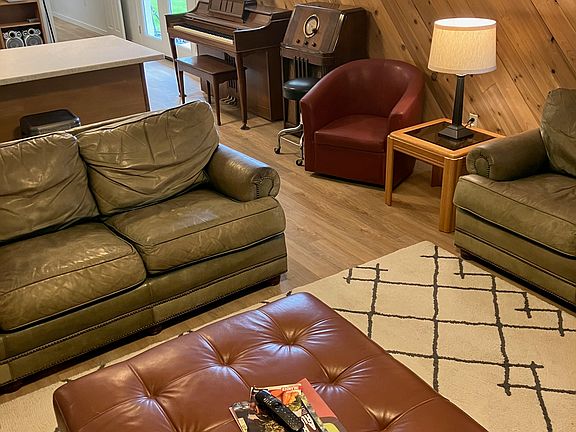 This fully furnished and equipped 3-bedroom, 2 full bath riverfront property is located on a large one-acre lot on a quiet street in a safe and scenic neighborhood. It is the lower, north facing (river view) level of a nice duplex. No yard work is required. The open floor plan includes a large Great Room that connects the living area, dining space and newly remodeled kitchen. The Great Room has a 65-inch LGTV, leather couch, loveseat and ottoman and an upright piano. The separate laundry room includes a full-size ironing board and iron, counter space, cabinets and a stainless-steel laundry sink. The master bedroom suite offers a comfortable King Stearns & Foster bed, 65-inch LGTV and ensuite bathroom that features a large tiled walk-in shower and separate toilet area. The second bedroom provides versatility with both a Queen bed and an XL Twin bed. The Den/office space easily functions as a 3rd bedroom with its sofa hide-a-bed. Total sleep capacity is 6 people. Outside, the backyard is a private oasis, featuring a spacious patio with table and chairs and a full-size gas BBQ. The river offers swimming, tubing, kayaking and fishing for trout and salmon. You can also just relax and unwind as you watch the wildlife along the river. Parking spaces for up to 3 vehicles includes one private covered space and two assigned off-street spaces. Additional street parking is also available. Located close to all amenities, schools, parks, and recreational facilities, this property features the convenience of urban living while providing a peaceful ambiance that is a welcome retreat from city noise and traffic.