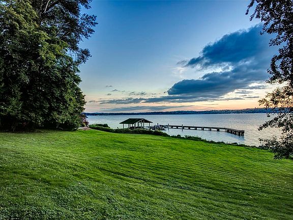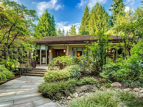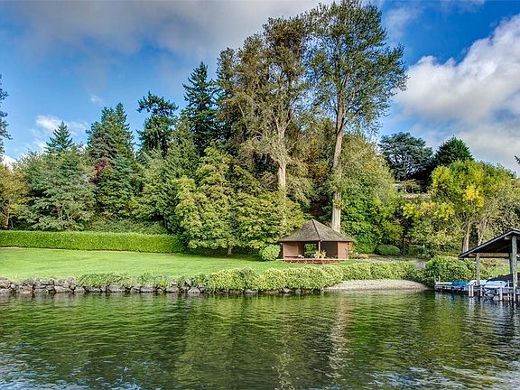 A truly unique Medina retreat, formerly part of the Eddy Estate. Private home enjoys being additionally part of a two plus acres of community property w/ 300 ft of west-facing gated waterfront shared w/ 3 other homes, incl tennis ct, play area, cabana, covered dock & prvt beach. The 5060sf rambler sits on a prvt 3/4 acre park-like haven. A peaceful home, with a covered patio surrounding the swimming pool & separate guest suite. Entertainers dream kitchen, writers room, pool house, 3 car garage.