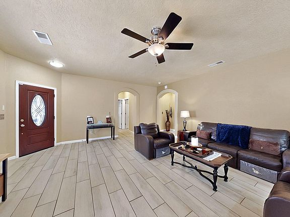 Enjoy the comfort of tasteful upgrades in this wonderful home, and a BRAND NEW HVAC System! With an open design that is subtly enhanced by high ceilings, gatherings here will be intimate and inclusive while dining, relaxing, and cooking. The 17'x16' Primary bedroom features ample area for a king sized bed, and there'll be no need to downsize dressers and side tables. In addition to this spacious sleeping area, a roomy ensuite with garden tub awaits you. You'll feel like royalty in your newly acquired personal space! Room for visitors and family members, will be found in the other two rooms served by the additional full guest bath. Clay tile roof, and synthetic stucco exterior protect your investment! Fully landscaped and well cared for, this property is for you! Come and see