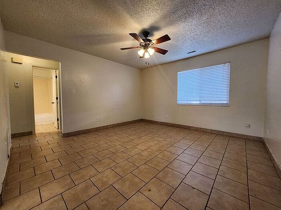 Shared fenced backyardCovered front porchAc unitCeiling fansTile and carpet flooring