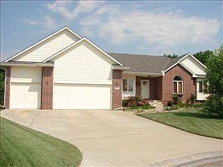 Gorgeous West Wichita home in Goddard School District! This beautiful 4 bedroom, 3 bath home has a wonderful layout and a 3 car attached garage. The spacious living room offers high ceilings, great windows and a gas fireplace for cozy evenings at home. A large formal dining area is perfect for entertaining and offers great natural lighting and a beautiful coffered ceiling. The huge kitchen boasts wood-laminate flooring, great cabinets, large drawers, lots of counter space for prep work, a full complement of matching appliances, a large island with eating-bar AND an eat-in area. Just off the kitchen sits a separate laundry area with a washer and dryer that both stay with the home! Down the hall you will find the very spacious master bedroom with large windows and a wonderful walk-in closet! The master bathroom is relaxation waiting to happen after a long day with soothing colors, a large Jacuzzi tub, dual sinks and a separate shower. Two additional large bedrooms and a full bathroom finish off the wonderful main level space. Downstairs is just as fabulous with a huge family room that offers tons of natural lighting from the view out windows, another full bathroom for added convenience, the fourth bedroom and a huge unfinished area for tons of extra storage. Outside the beauty continues with a sprinkler system on a well system to assist with the maintenance of the yard and landscaping. The large back yard offers a great covered deck that leads out from the eating area in the kitchen and is perfect for cook outs. Lots of mature trees around the perimeter of the property for added privacy, a neighborhood pond and a neighborhood playground (maintained by the HOA) all make this property a joy for all. This is a MUST see set up your appointment before it is gone!
