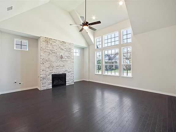 Luxurious NEWAshton Woods homejust11 miles fromLegacy West, 20 miles to N. Dallas,minutes from US-75 andwithin walking distance to shopping and dining at the Shops at Watters Creek!This 1-story home has great character with a brick exterior, mahogany front door with Flemish glass and a spacious covered front porch. Inside, gorgeous hardwood flooring carries throughout this open floorplan home. The two secondary bedroomseach have their own walk-in closetand share a full bath with a double-sink vanity. Easily entertain in this bright and open kitchen-family-dining area complete with avaulted ceiling and a fireplace outfitted in a white semi-gloss tile. The gourmet kitchen is well appointed with Maestro Quartz countertops, pot and pan drawers, a single bowl undermount sink, pewter cast flat panel cabinetry, abundant countertop space, a pull out waste basket, Whirlpool stainless steel appliances, an eat-in bar top island,spot resistant faucet, satin nickel pendant lights and a walk-inpantry. The private primary suite is at the back of the home and features a freestanding tub, two linen closets,frameless shower enclosure and an expansive walk-in closet. Enjoy your corner lot home and backyard space from the covered patio.Moen faucets, brushed nickel hardware, smart home system with a Brilliant panel and Ring doorbell and a 2-car garageare just a few additional upgrades in this
