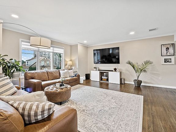 Welcome to this all brick, 3 bedrooms, 3 full and 1 half bath. Oversized duplex offering many special features set on a cul-de-sac. Open floor plan with large living rm and dining rm leads into modern, eat-in kitchen with breakfast bar, new stainless steel appliances, door to deck, and laundry area. The 2nd floor offers large master bedroom with high ceiling, walk-in closet, master bath. 2 additional large bedrooms and a full hallway bath complete this level. There is a full, finished basement with a full bath and separate entrance. CAC, 3 zone baseboard heating, central vac, sprinkler system. Refinished hardwood floors throughout. Beautifully fenced-in yard for family to enjoy! Commuters dream! Quick access to GWB and NYC, short walk to School #2 and Middle School.