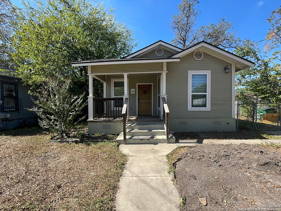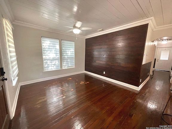 Charming, remodeled 2-bedroom, 2-bathroom home that is ready for immediate move-in. This residence features modern updates throughout, including elegant hardwood floors and custom blinds, creating a sophisticated and comfortable living space. The open-concept kitchen is a true highlight, offering beautiful granite countertops, bright white cabinetry, stainless steel appliances, and gas cooking. It also boasts a large kitchen island, perfect for meal preparation and casual dining, along with abundant cabinet space for all your storage needs. Additionally, there is a separate, dedicated dining room for more formal gatherings. Further enhancing this property are a large exterior deck, ideal for entertaining and outdoor relaxation, and a separate garage providing convenient parking or additional storage. The refrigerator is also included with the home, adding to its move-in readiness.