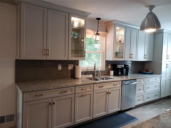 Gorgeous Updated Home. Adorable Kitchen with Newer Cabinets and Granite Cntrs, Large Great Rm with Brick Fpl that extends to Ceiling & Beautiful Vaulted Ceiling, Finished Basement with Full 2nd Kitchen, Bedroom and Full Bathroom with Closet next to Bath. Perfect for In-Law Quarters or Teen. Walkout to Huge Patio. Tree House and Fenced Yard. Park behind house. Updated Bathrooms with Tile & Granite. Mounted TV in Great Room and Family Rooms are negotiable. Backyard halogen bulb needs replaced.