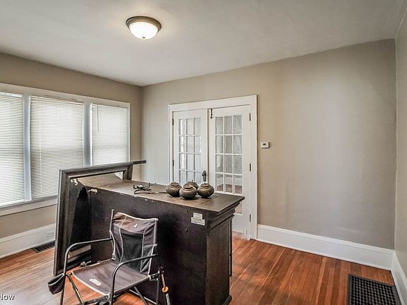 So much potential in this 3 bedroom, 1.5 bath Canton home! An inviting front porch welcomes you into the living room, where hardwood floors flow through French doors into the dining room. The kitchen offers plenty of cabinet and counter space, plus a charming breakfast nook with an eating ledge. A bonus room, perfect for a home office, and a half bath complete the main level. Upstairs, all three bedrooms feature generous closets and share a modern full bath. Outside, enjoy a partially fenced backyard and a detached two car garage. An affordable opportunity—call today!