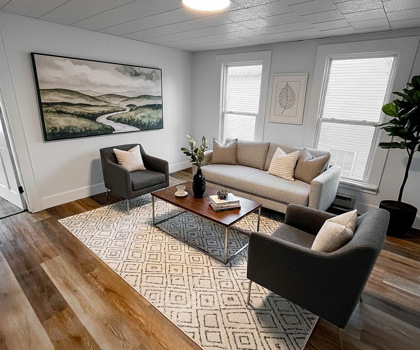 Step into an apartment that truly feels new! This upstairs unit has been completely renovated from top to bottom, featuring a mix of luxury vinyl plank and tile flooring that gives each space its own personality. Every room has been updated with new LED lighting for a bright, modern feel. The kitchen is upgraded with quartz countertops and fully electric cookingclean, efficient, and simple to maintain. The bathroom has a brand-new tiled shower that feels more like a spa upgrade than a rental standard. Fresh paint throughout brings in light and life, and the all-electric setup keeps heating straightforward and predictable. Images include virtual staging to help visualize the space.