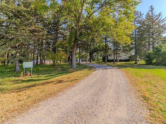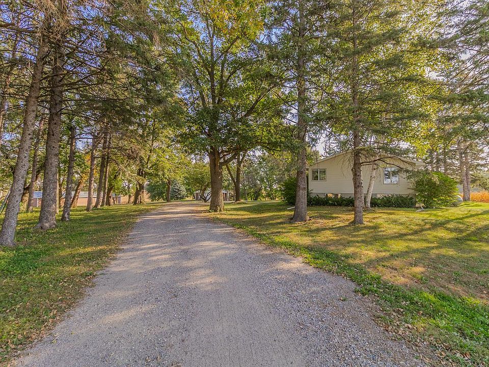 acre beautifully manicured property with privacy and tranquility. Home is nestled among the trees, and it offers a 4 bedroom, 2 bath with lots of room for entertainment of just to relax and this home has a main floor bedroom, hardwood floors, very nice deck off the back of home, and so much more. Lots of updated items that include new A/C unit in 2024, radon mitigation system 2020, newer motor in well pump and new casing for well, Culligan filtration drinking water system which is owned 2020, and gutter helmet gutters. The property has a huge amount of storage in the multiple outbuildings. Very large 95x60 pole shed with 14 ft overhead door installed in 2014 and has about 2/3 of shed is concrete floor. Another outbuilding/shed is 88x26, another outbuilding 32x24 for storage items, detached 2 car garage, grain bin, and expansive views for your enjoyment. You don't want to miss this one!