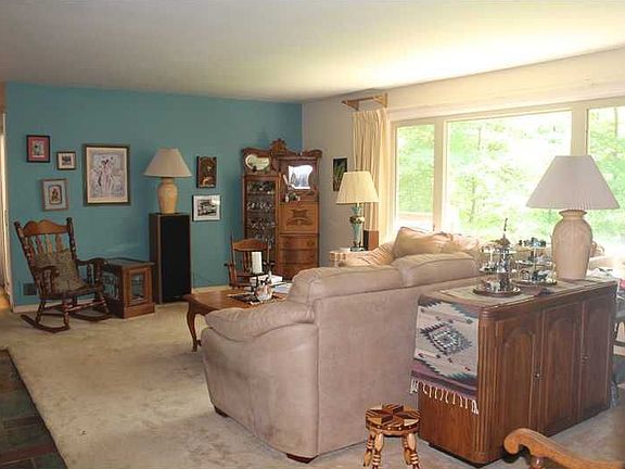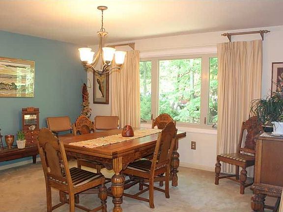 Private setting & convenient location! Master suite on lower level w/ separate dressing area & walk in closet. Large living room window for lots of natural light. Gas fireplaces in living & family rooms. Peninsula seating area in updated kitchen. Additional bedroom w/ ensuite. Double closets in two bedrooms. Large family room w/ access to rear yard. Laundry area with folding table & storage. Rear deck overlooking tree lined yard. Level area in wooded section of yard. Updated windows, baths & front door.