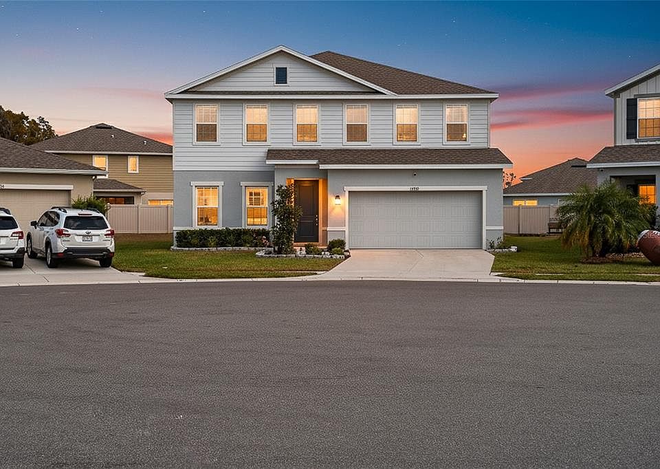 Welcome to this stunning five-bedroom, three-bathroom home located in the highly desirable Cypress Preserve community in Land O’ Lakes. Built in 2022 and tucked away in a quiet cul-de-sac, this two-story residence offers modern comfort, thoughtful design, and plenty of space for today’s lifestyle. Step inside to discover an inviting open floor plan where the kitchen, complete with a spacious island and breakfast bar, flows seamlessly into the living area. Large sliders lead to a small covered patio, creating a perfect spot for morning coffee or outdoor relaxation. A dedicated office on the first floor provides an ideal space for remote work or study. Upstairs, you’ll find cozy carpeting throughout the second floor along with a generous bonus room that can serve as a media space, playroom, or additional living area. The primary suite offers a peaceful retreat with a well-organized walk-in closet and plenty of room to unwind. With its modern construction, prime location, and flexible layout, this Cypress Preserve home offers the perfect blend of style, space, and convenience in the heart of Land O’ Lakes.